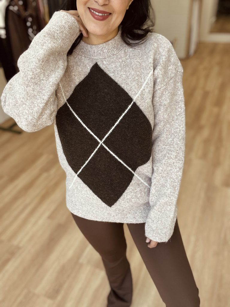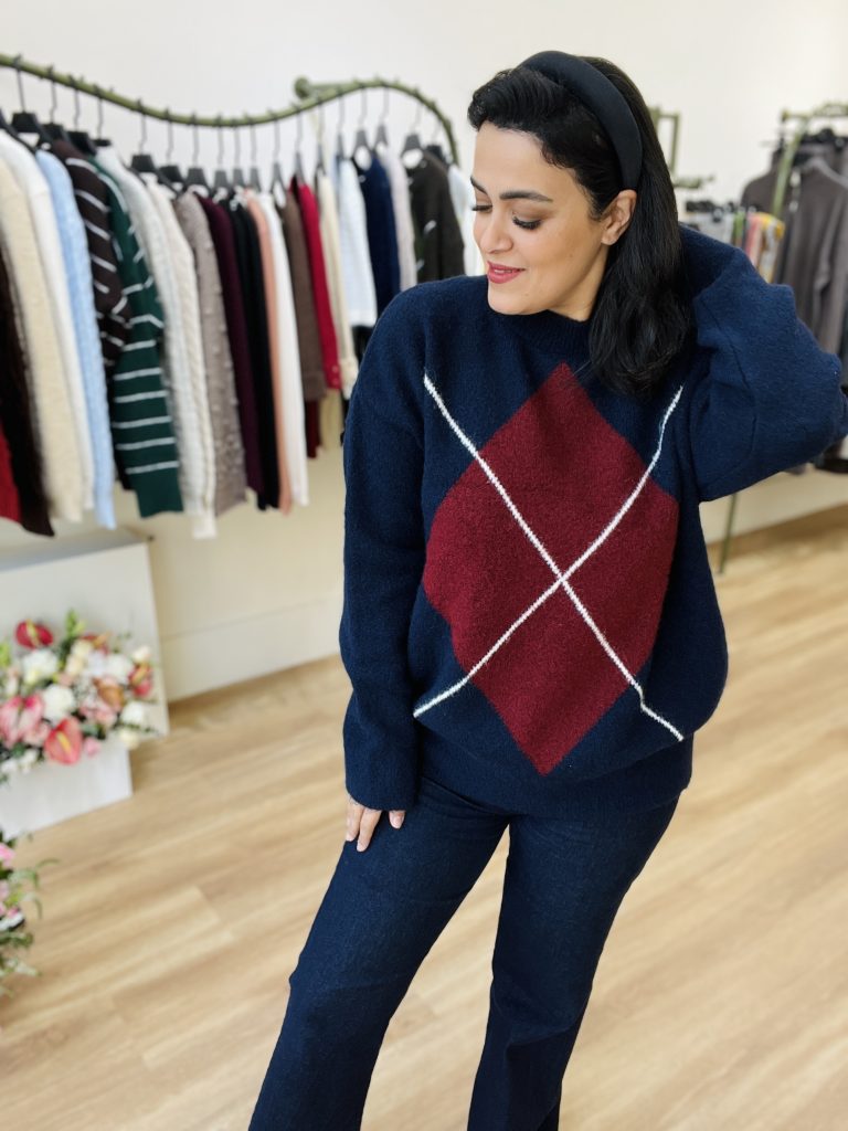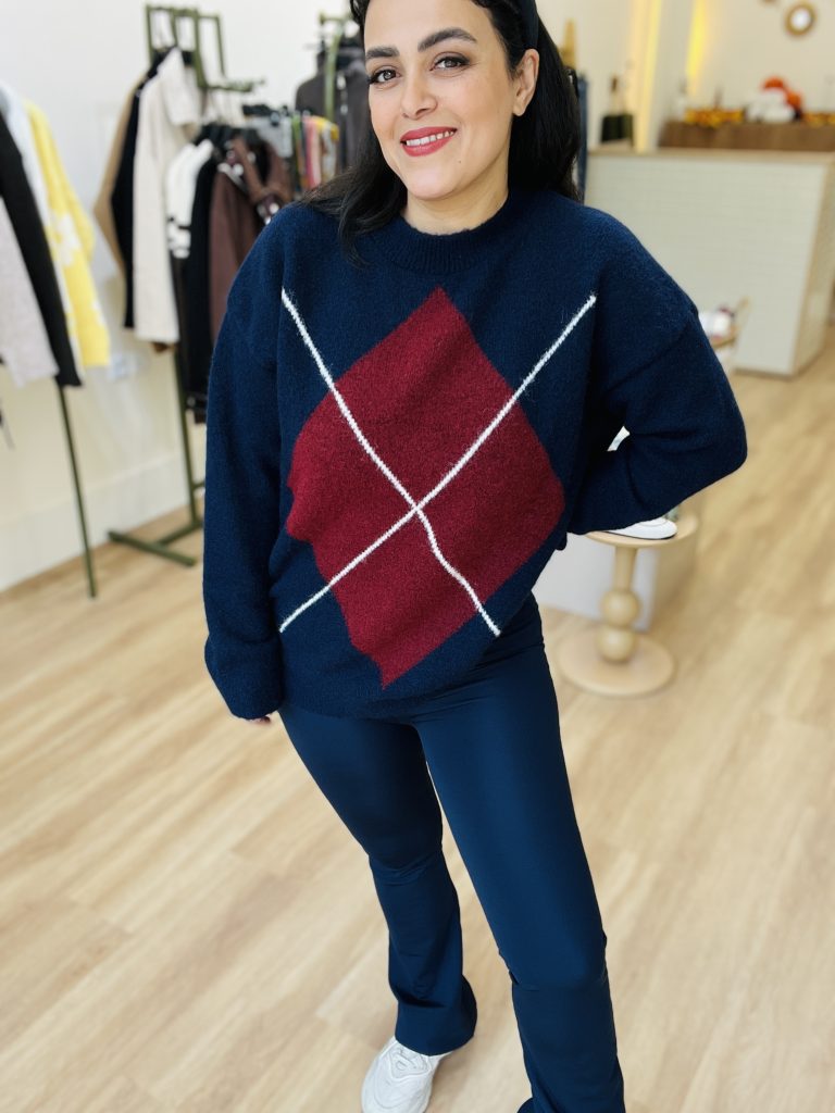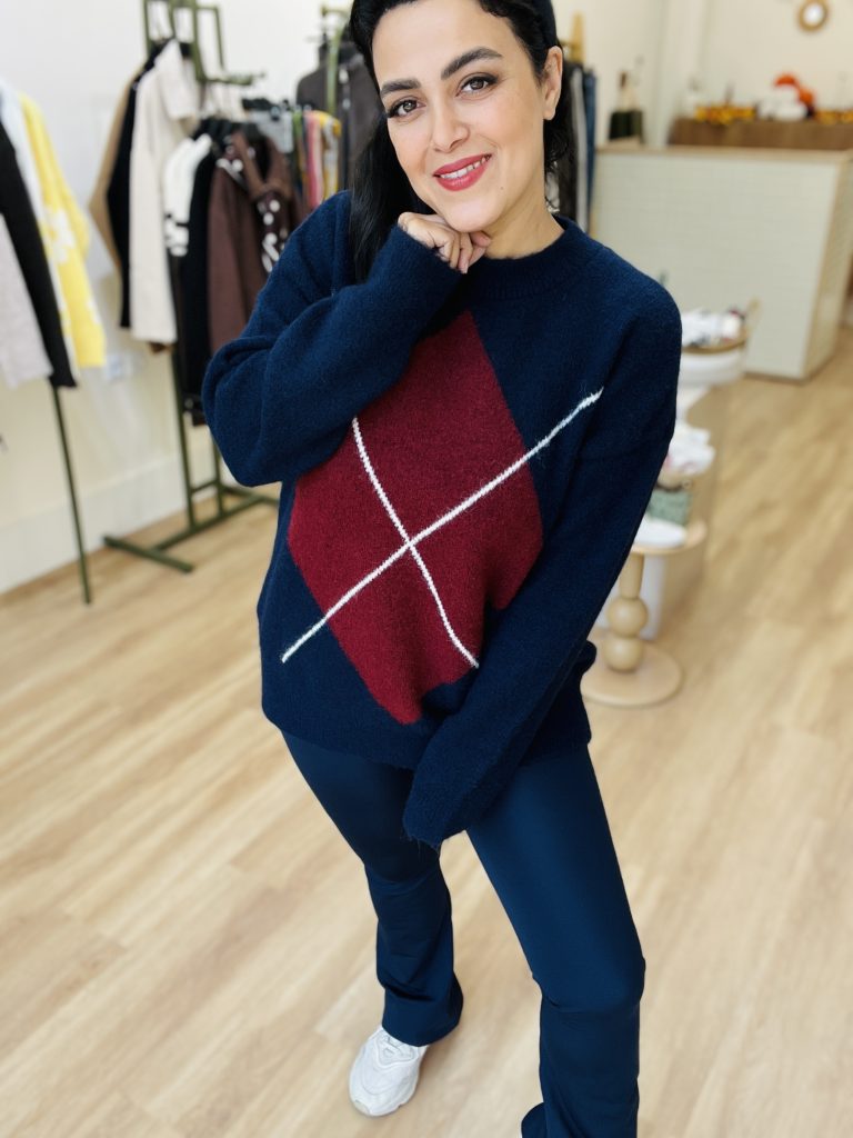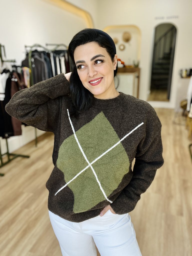 این بافت یک پلیور بافتنی ضخیم و گرم است با مشخصات زیر: