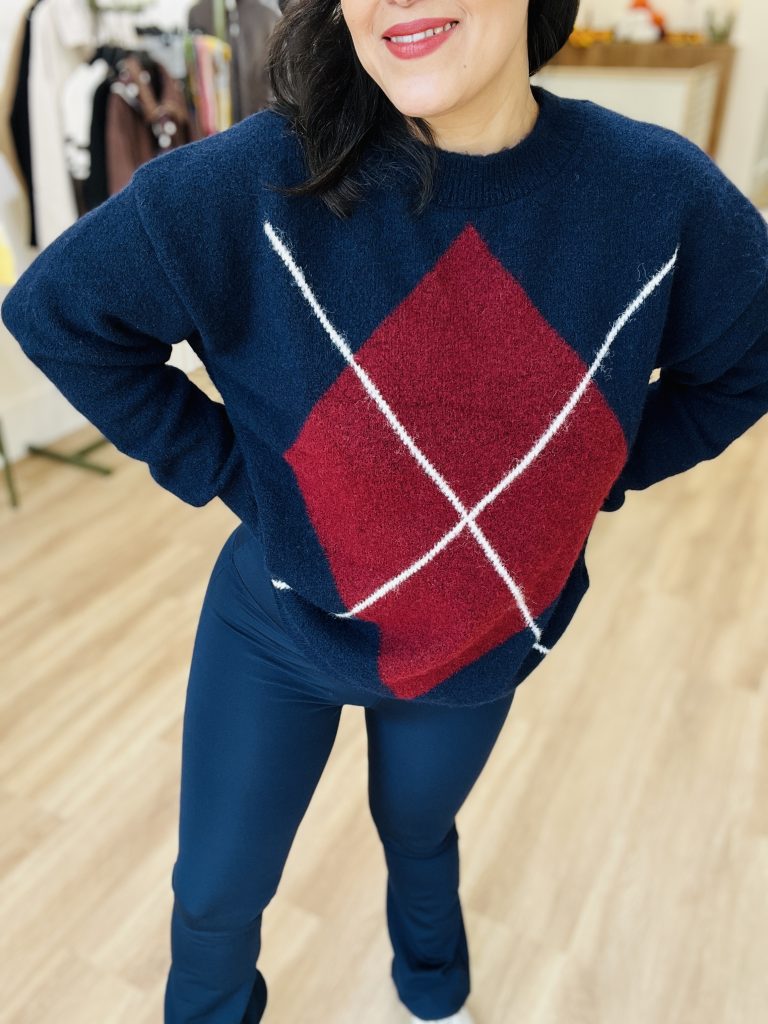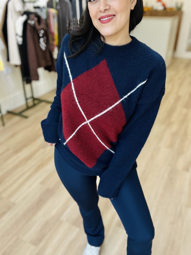 •دو خط مورب سفید که لوزی را به شکل طرح آرجایل (argyle) کامل میکنند.