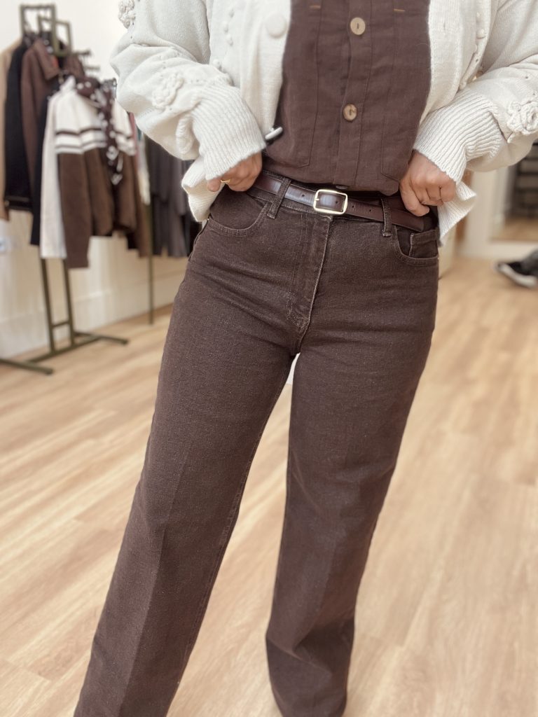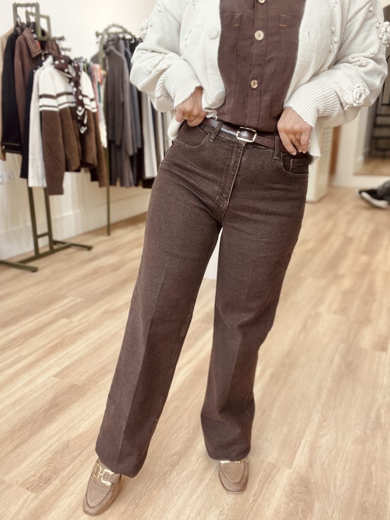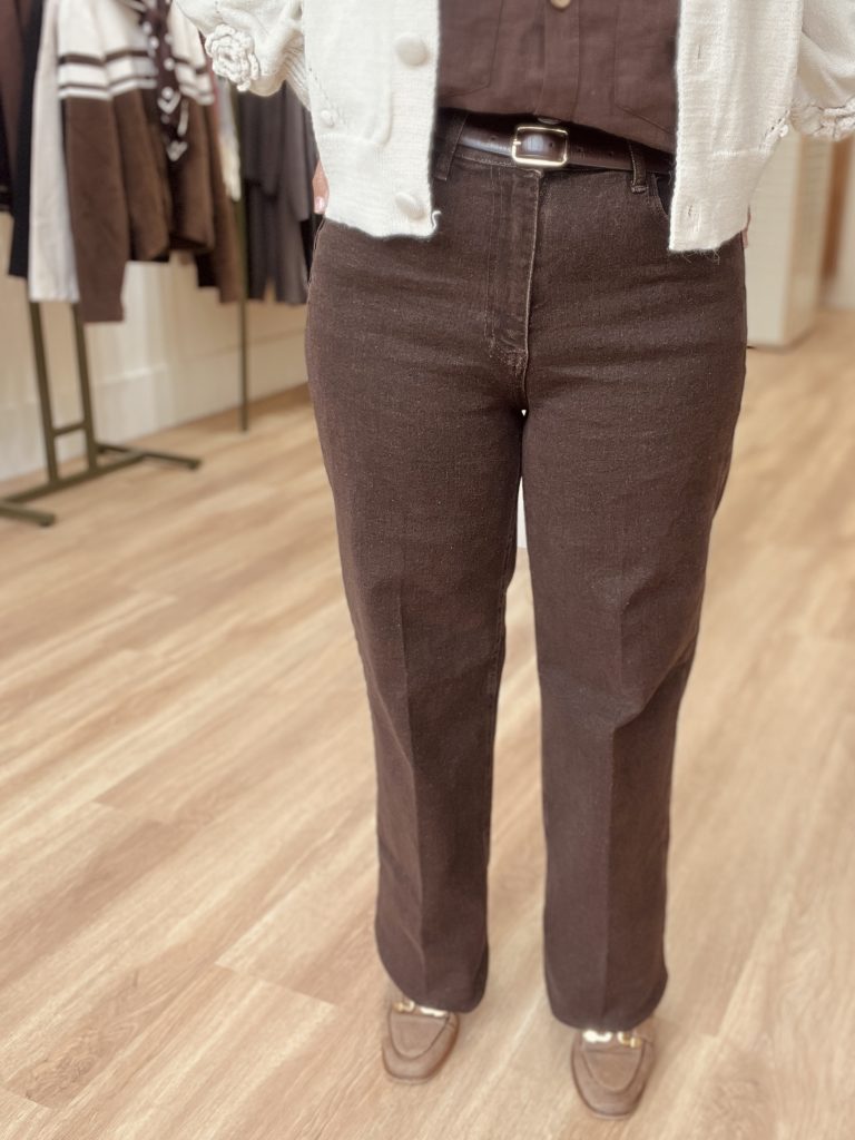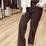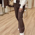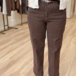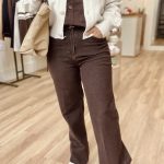 این شلوار قهوهای با برش راستهی مایل به فلِر (straight to slight flare) از اون مدلهاییست که استایل کلاسیک و شیک داره و در عین حال خیلی کاربردیه. جنسش هم ظاهراً دنیم یا کتان ضخیمه، که باعث میشه هم برای پاییز مناسب باشه و هم فرم بدن رو خوب نگه داره.