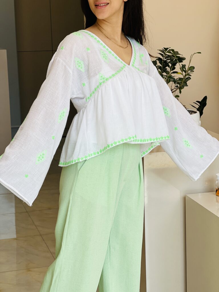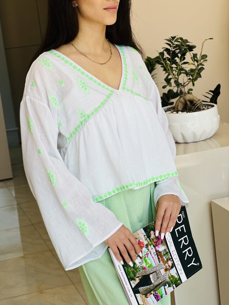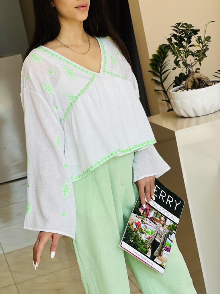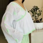 شومیز نخی گلدوزی شده بدون آبرفت، با استایل کژوال، یک انتخاب عالی برای مهمانیها است. این شومیز با رنگبندی سبز نعنایی و سرخابی و سایزهای 36، 38 و 40 ارائه میشود. طراحی گلدوزی شده زیبا و بدون آبرفت، اطمینان از دوام و زیبایی شومیز را فراهم میکند. پارچه نخی با کیفیت بالا، راحتی و تنفس پذیری را تضمین میکند و باعث میشود شما در تمام طول مهمانی احساس راحتی کنید. این شومیز به راحتی با انواع شلوارها و دامنها ست میشود و به شما ظاهری شیک و بهروز میبخشد. انتخابی که شما را همواره جذاب نگه میدارد!