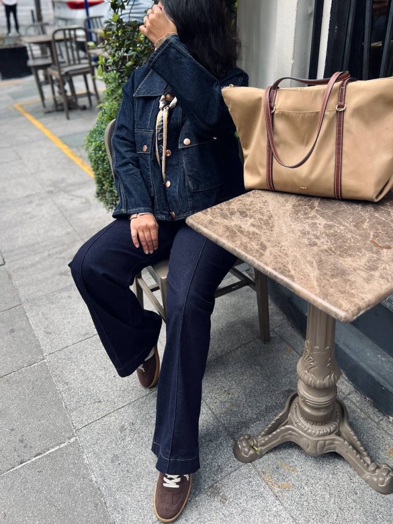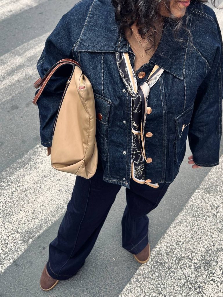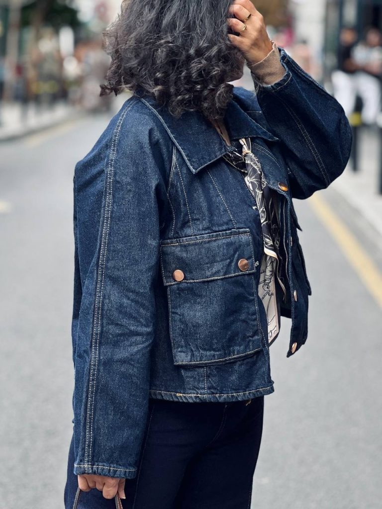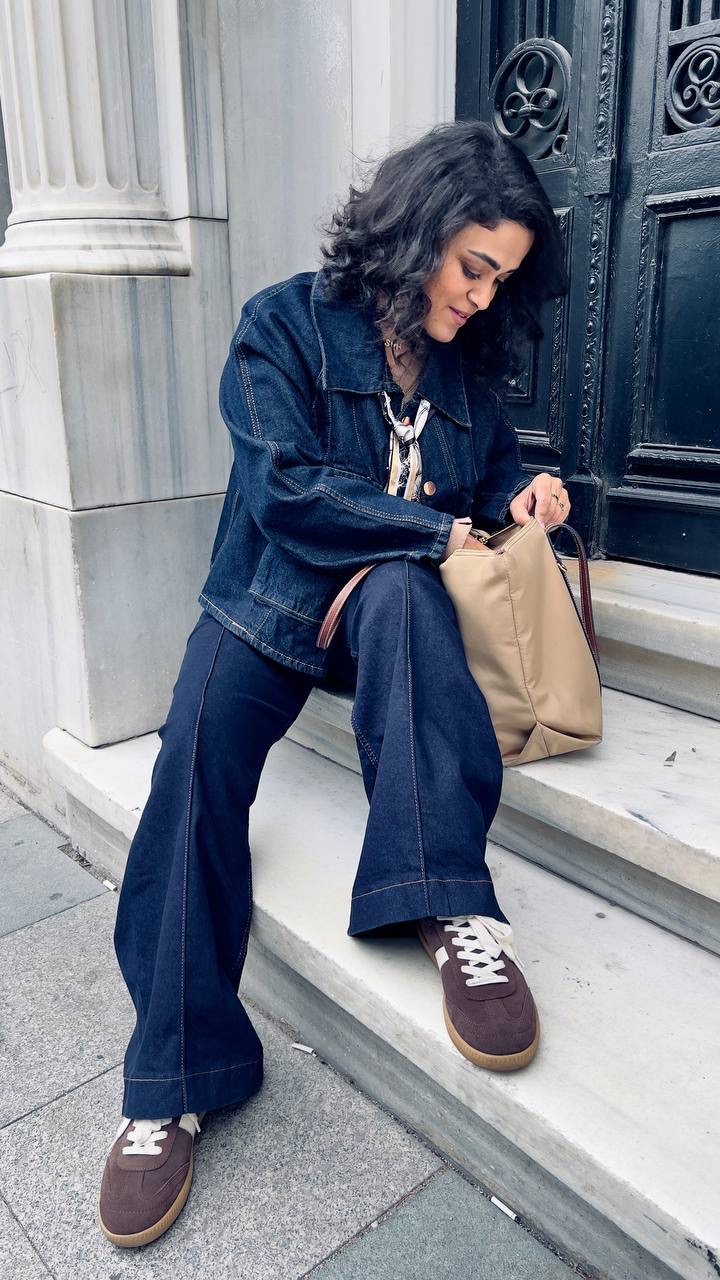 • استفاده از ست جین روی جین ، با رنگ تیره باعث شده ظاهر منسجم، کلاسیک و در عین حال مدرن به نظر بیاد.