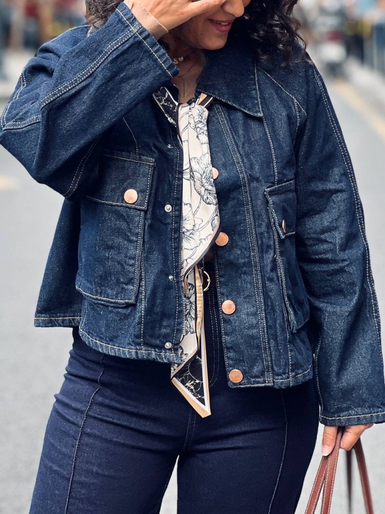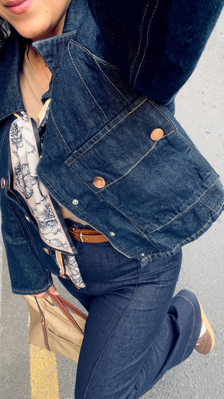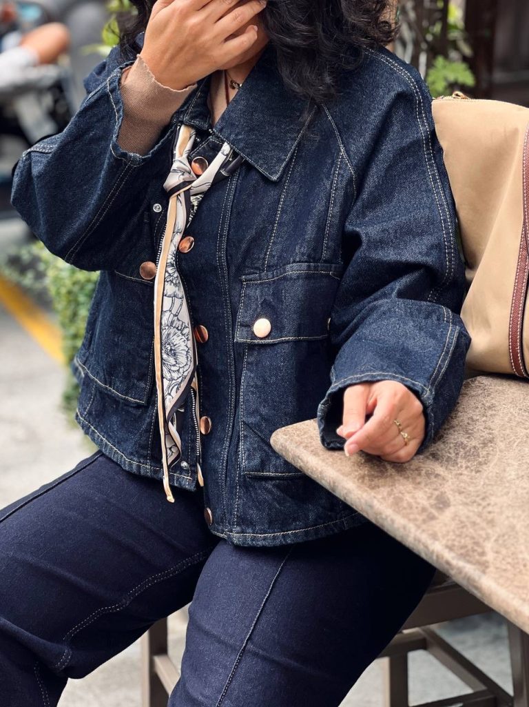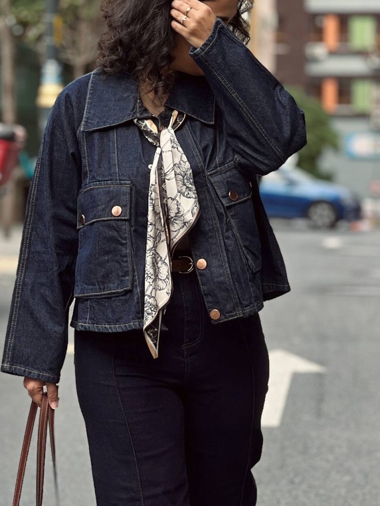 • استفاده از ست جین روی جین ، با رنگ تیره باعث شده ظاهر منسجم، کلاسیک و در عین حال مدرن به نظر بیاد.